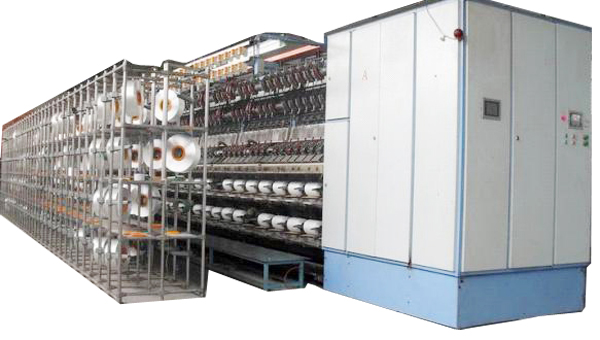 主要配置 1.主機由車頭部件、機架部件、第一喂入羅拉W1、第二喂入羅拉W2、輸出羅拉W3、卷繞羅拉W4、橫動防疊部件W5、切絲和探絲部件、變形箱部件、上油裝置、供氣、水部件、電氣部件、絲架部件等組成。 2、全機兩側的W1、W2、W3、W4、W5為分別驅動,可設置不同工藝,同時紡不同品種。 3、全機每錠配2套探絲器,2套切絲器; 4、可選配竹節裝置; 5、絲架每錠4個絲位; 6、人機界面、PLC完成工藝參數的設置、修改、顯示、儲存,整機調速均由變頻器控制同步電機完成。